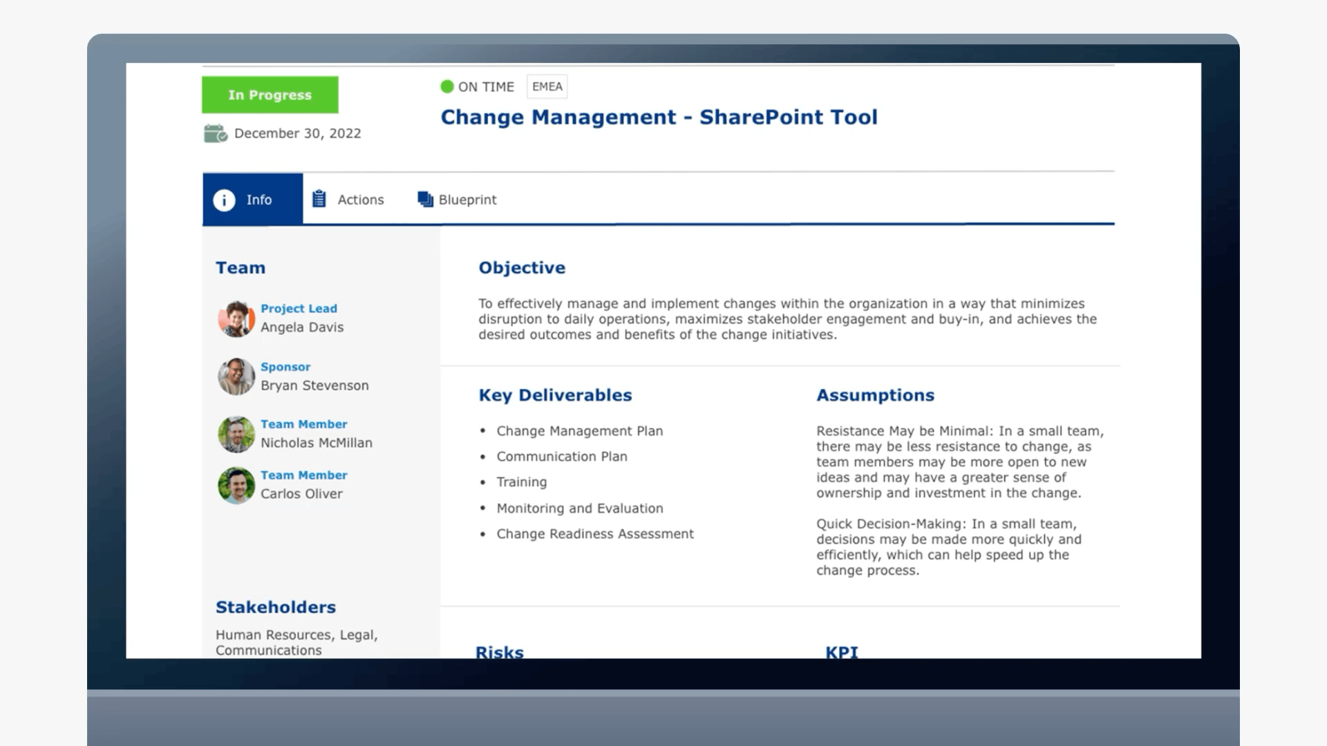 Our client, the quality and compliance division of a Fortune 500 pharmaceutical company, needed to overhaul its system for project management. Team members were storing information and detailing progress updates about their quality initiatives in PowerPoint decks, which were saved in an array of folders and personal drives. This fragmented approach made it nearly impossible for project management leaders to track progress and maintain visibility across the entire portfolio, leading to delays and redundant efforts. As we say at Boshā, content without context is chaos.
